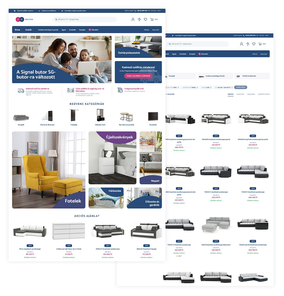 Ukázka maďarského e‑shopu SG nábytku, který získal dvě první místa