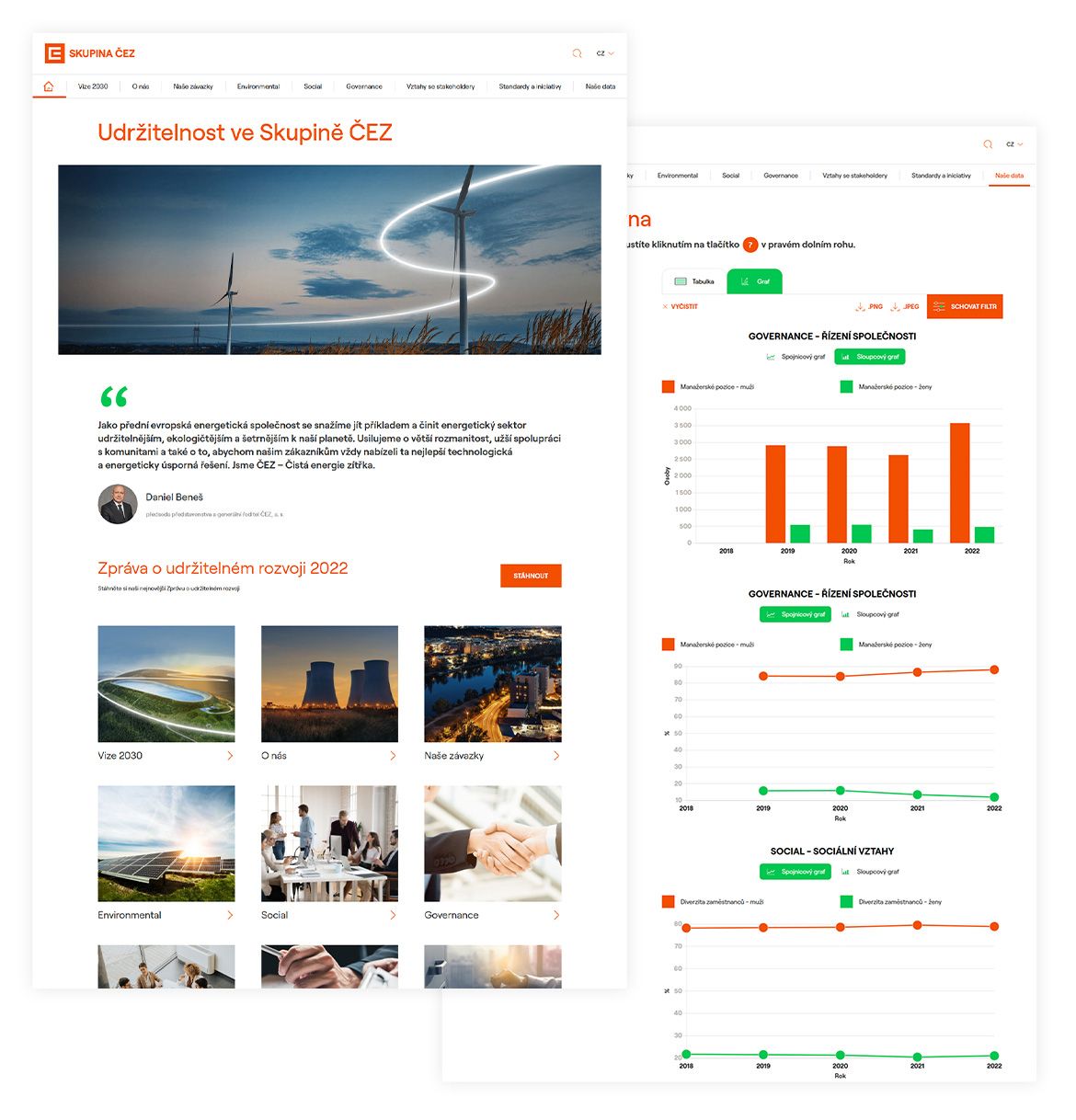 Zadařilo se nám i v kategorii Udržitelnost a ekologie, kde druhé místo získal projekt online ESG datové knihovny pro Skupinu ČEZ. Tato knihovna přehledně mapuje téměř 1 800 ukazatelů z let 2018 až 2022 týkajících se životního prostředí, sociálních vztahů a řízení firmy. Svým rozsahem se jedná o největší databázi nefinančních ukazatelů ze všech evropských energetik. A také o první projekt podobného rozsahu a provedení v České republice.
