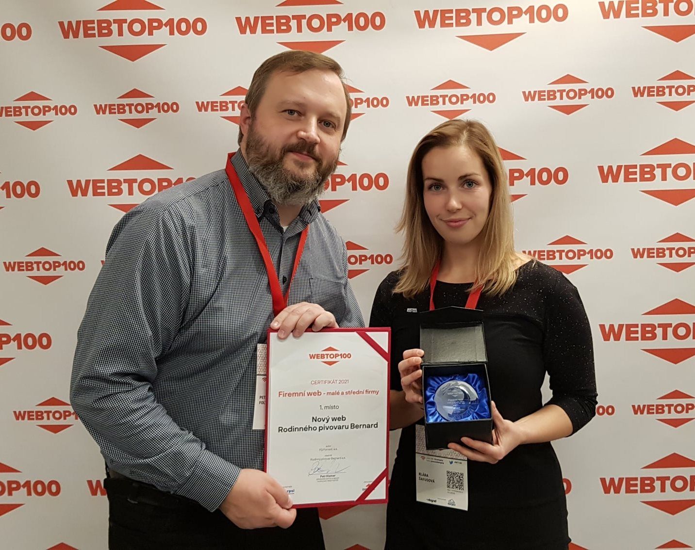 Máme velkou radost, že i v minulém roce porota prestižní soutěže WebTop100 ocenila jeden z našich projektů – nový web Rodinného pivovaru Bernard. V této soutěži se slovy organizátorů každý rok utkávají „skvělé nápady a inovativní řešení digitálního marketingu.“ 1. místo jsme vybojovali v kategorii Firemní web pro malé a střední firmy.