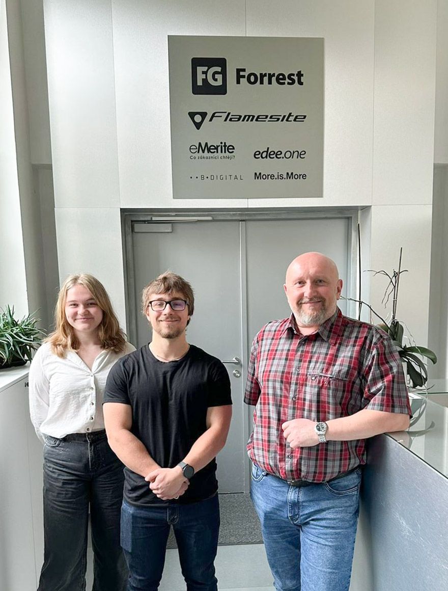"Exkurze v open-space prostorech FG Forrest mi přinesla dobrý a detailnější náhled do procesu web developmentu. Předtím jsem nevěděl, do jak moc velké hloubky se určité kroky vývoje propracovávají, takže jsem vděčný Forrestu za nový náhled na věc. Personál byl taky velice vstřícný a na všechny otázky ochotně odpovídali. Díky."