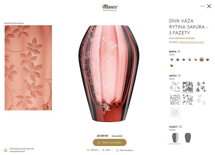 Výrobky Moseru jsou designová umělecká díla, čemuž odpovídá i jejich cena. Způsobu jejich prezentace je proto i v online prostředí nutné věnovat odpovídající péči. Podobně jako v showroomu nebo na stránkách tištěného katalogu také v digitálním prostředí tento typ produktů vyžaduje především dostatek prostoru, aby vynikla jejich jedinečnost.