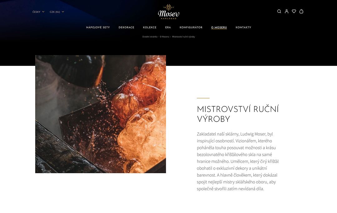 Na samém začátku spolupráce jsme navštívili sklárnu v Karlových Varech a krok za krokem si prošli proces výroby. Ta péče, kvalita, mistrovství a láska k řemeslu nás zcela okouzlily. V následujících měsících pak bylo naším úkolem připravit webové řešení, jehož prostřednictvím tuto jedinečnost a krásu bude moci obdivovat celý svět.