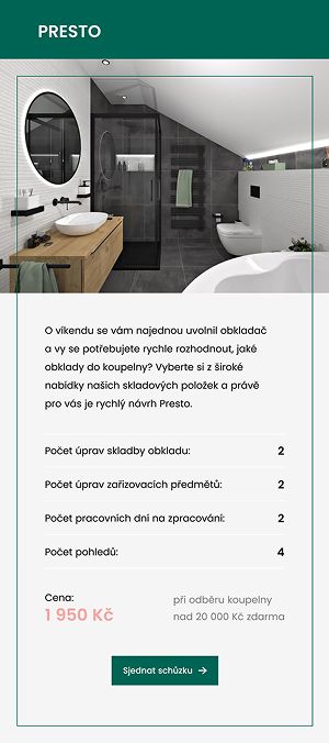 - Plánovaný e‑shop měl být vizuálně atraktivní a s inspirativním obsahem (např. hotové sestavy koupelen i kuchyní). Zároveň bylo důležité propojit nápady na provedení koupelen a kuchyní se skutečným nákupem („shop the look“).