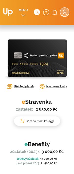 Elektronickou stravenkovou kartu eStravenka lze v mobilní aplikaci přiřadit k placení metodami Apple Pay a Google Pay. Užitečnou funkcí je pak i chatbot, který umožňuje řešit požadavky uživatelů 24 hodin denně, a to jak z mobilní aplikace, tak z portálu Můj Up.